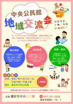 中央公民館において、サークルや地域の学校などが日ごろの活動成果を発表する会が開催される為、当会も参加... -